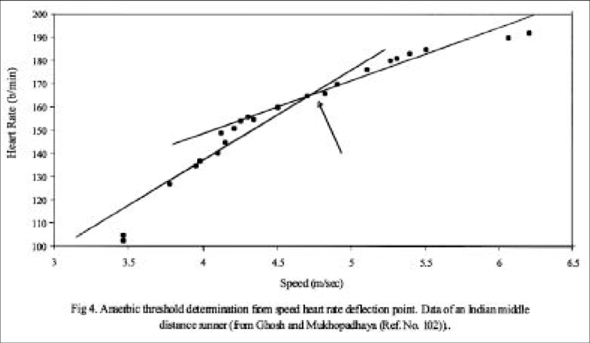 We all have a maximum heart rate. Mine is around 179. We might therefore expect a non-linear relationship to exercise intensity overall, perhaps with heart rate asymptotically approaching this limit. Despite this, below threshold, in many (not all) athletes, heart rate has an approximately linear response to increasing exercise intensity and this is where it can be most useful in guiding training. Common sense informs us that this relationship should eventually fail as intensity increases (something has got to give, and it does!). Conconi described a "deflection point", a correlation to lactate threshold and devised a field test based on this but opinion regarding its value is divided. Scatter plots of heart rate vs. intensity with a couple of lines superimposed on them "showing" the deflection point are wholly unconvincing. Perhaps the simplest description of the response is that it is curvilinear with a squashing up of heart rate values at higher intensities. This is clearly a problem for short interval training.