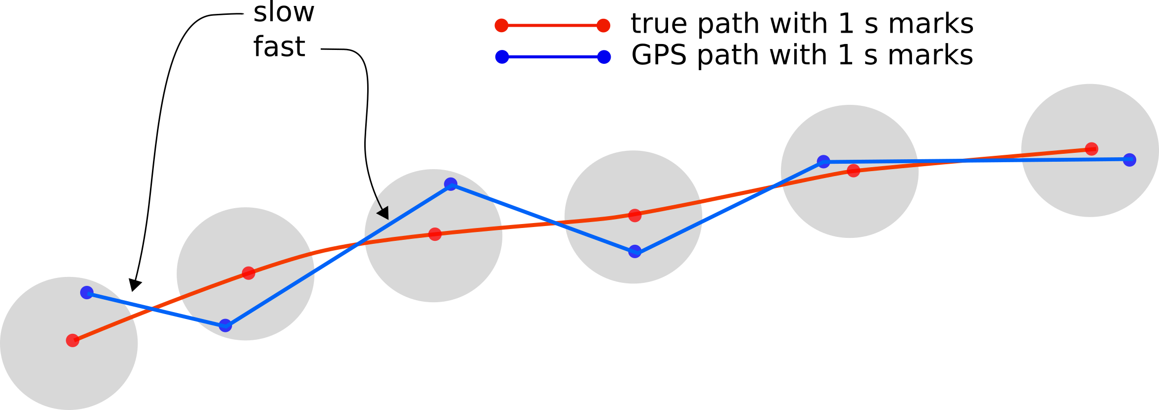 High resolution GPS typically samples every second. A problem arises because the GPS accuracy is limited to within a few meters (typically less then 3.5 meters) of your true location. Over an entire run this is virtually irrelevant. Over a one second period this is extremely relevant. Consider a runner with a 40 minute 10k pace running on average at just over 4 meters per second. The distance error of a single sample is of the same magnitude as the average distance traveled! Although clever algorithms disguise this problem using filtering (a simple example being a moving average over a several second window) this reduces the time responsiveness making it unsuitable for short intervals of under 30 seconds. Foot pods, such as Stryd, as well as providing highly accurate distance measurement, provide instantaneous pace with a level of accuracy and precision unachievable with conventional GPS.